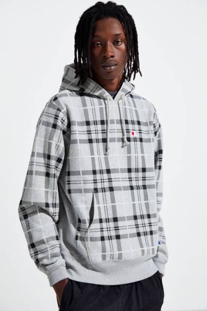 Product Name: Reverse weave pullover plaid hoodie on sale