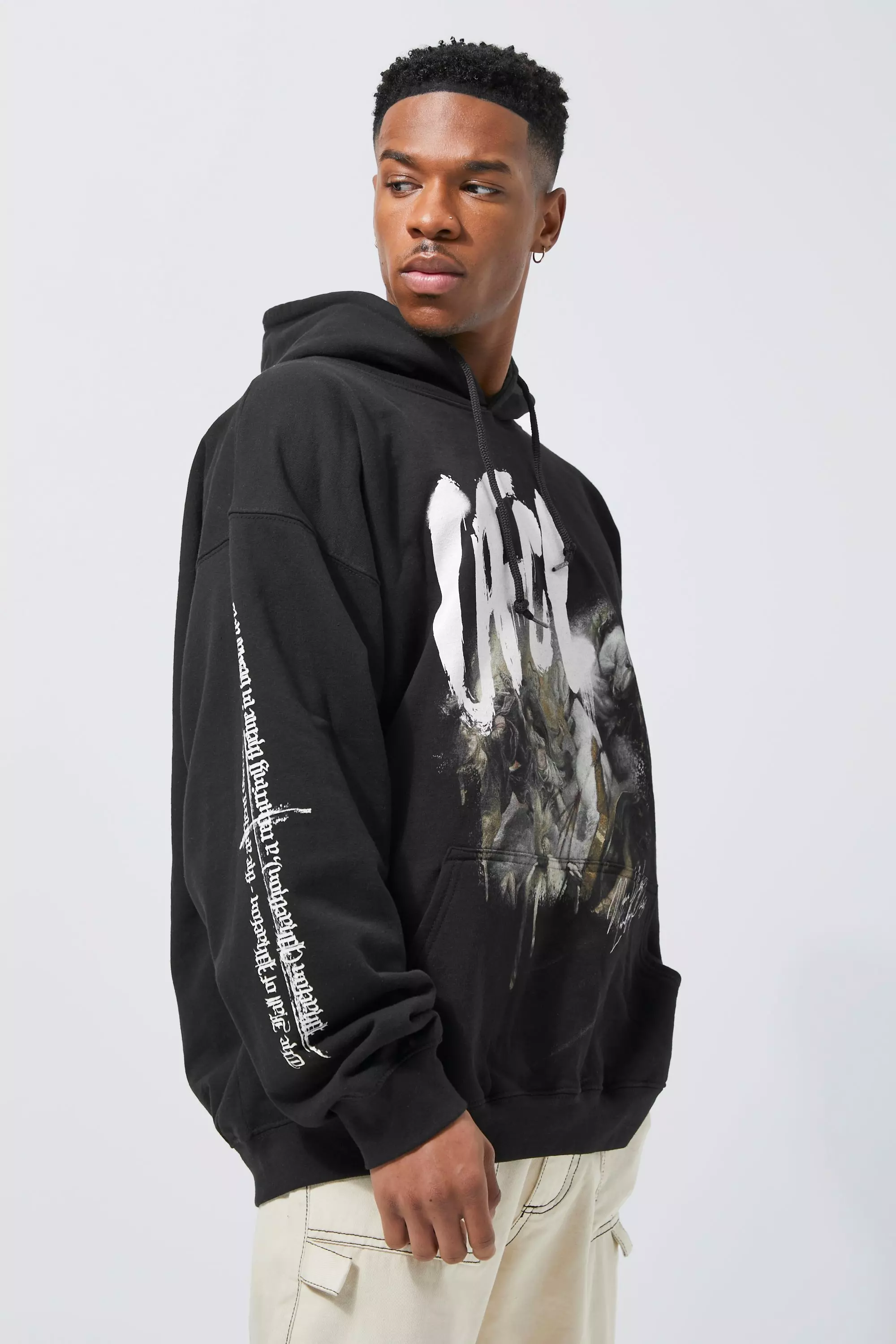 Product Name: Black oversized graphic hoodie on sale