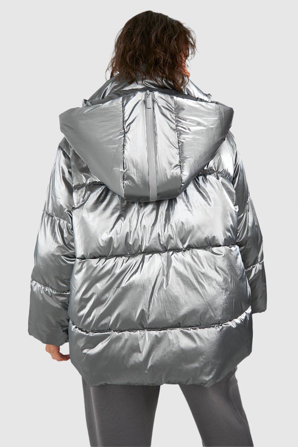 Product Name: Silver hooded puffer jacket on sale